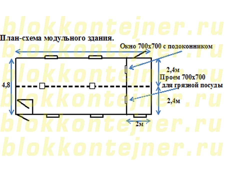 Модульное здание -  8,0 *4,8*2,5м  состоит из 2 шт. Блок-Контейнеров.